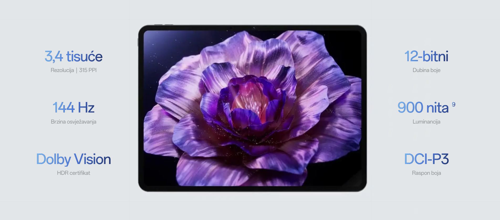 | Zaslon | 13,2" Omjer zaslona 7:5 LCD (LTPS) Dubina boja zaslona12-bitni (8-bitni hardver + 4-bitni FRC) Rezolucija 3392 x 2400 Omjer zaslona 89,3% PPI 315 Raspon boja 96% NTSC-a Pokrivenost DCI-P3 98% DeltaE≈0,7 Brzina osvježavanja Do 144 Hz, adaptivno osvježavanje Brzina uzorkovanja dodira Do 540 Hz Zadano 120 Hz Svjetlina 600 nita (HBM 900 nita) |