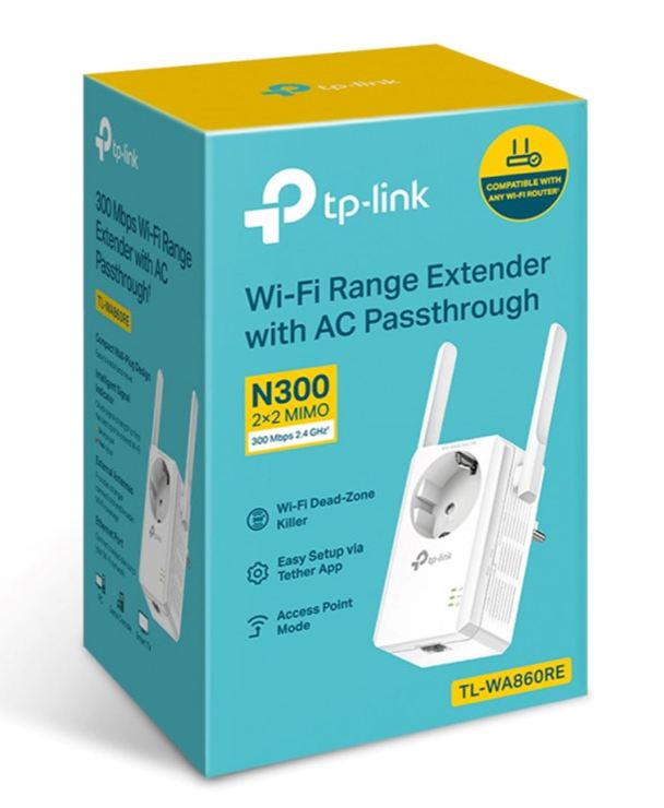 TP-LINK-ov TL-WA860RE WiFi repetitor dizajniran je za stvaranje naprednog WiFi-a sa širom pokrivenošću i većim dometom. Nudi način rada s repetitorom kao standardni WLAN način rada i djeluje kao "relejna stanica" za preuzimanje WLAN signala s osnovnog usmjerivača ili s pristupne točke mreže i zatim besprijekorno proširuje signal u područja koja su prije bila nedostupna ili teško dostupna žica. Sa svojim LAN priključkom, može poslužiti kao WLAN adapter za mrežne uređaje. Malo kućište za praktično pričvršćivanje na utičnicu omogućuje fleksibilno postavljanje. Postavljanje je dječja igra: pritiskom na gumb WPS na AP/usmjerivaču, nakon čega slijedi gumb WPS na TL-WA860RE, možete lako i jednostavno uspostaviti vezu. TL-WA860RE pamti prethodno konfigurirane WLAN mreže tako da se možete jednostavno prebacivati između različitih bežičnih mreža koje su već programirane bez potrebe za bilo kakvim promjenama.
