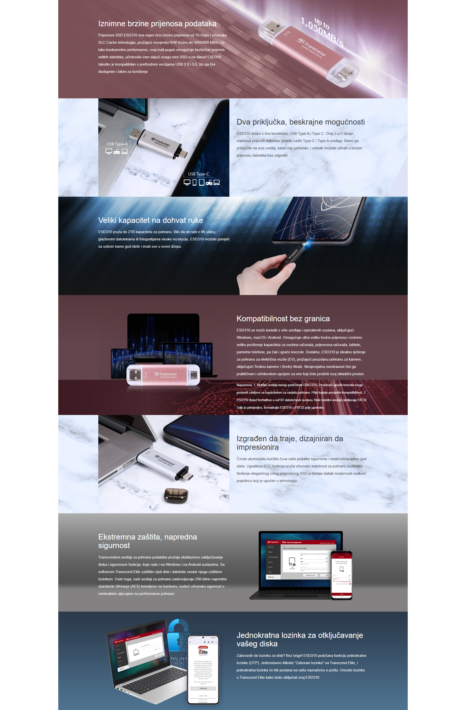 Bilo da ste profesionalac koji treba brz i pouzdan uređaj za prijenos velikih projekata, gamer koji želi dodatni prostor za igre ili jednostavno tražite sigurno i praktično rješenje za čuvanje važnih datoteka, Transcend SSD ESD310C 2TB ispunjava sva vaša očekivanja.