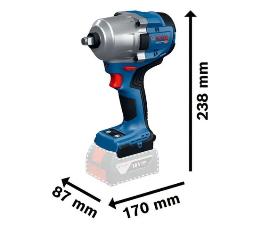 GDS 18V-780 Professional ima robusni držač alata od 1/2 inča s dodatnim zaštitnim prstenom, velikim okretnim momentom, više različitih načina rada za različite primjene, snažan motor bez četkica, kratku glavu te je kompaktna i lagana dizajna.