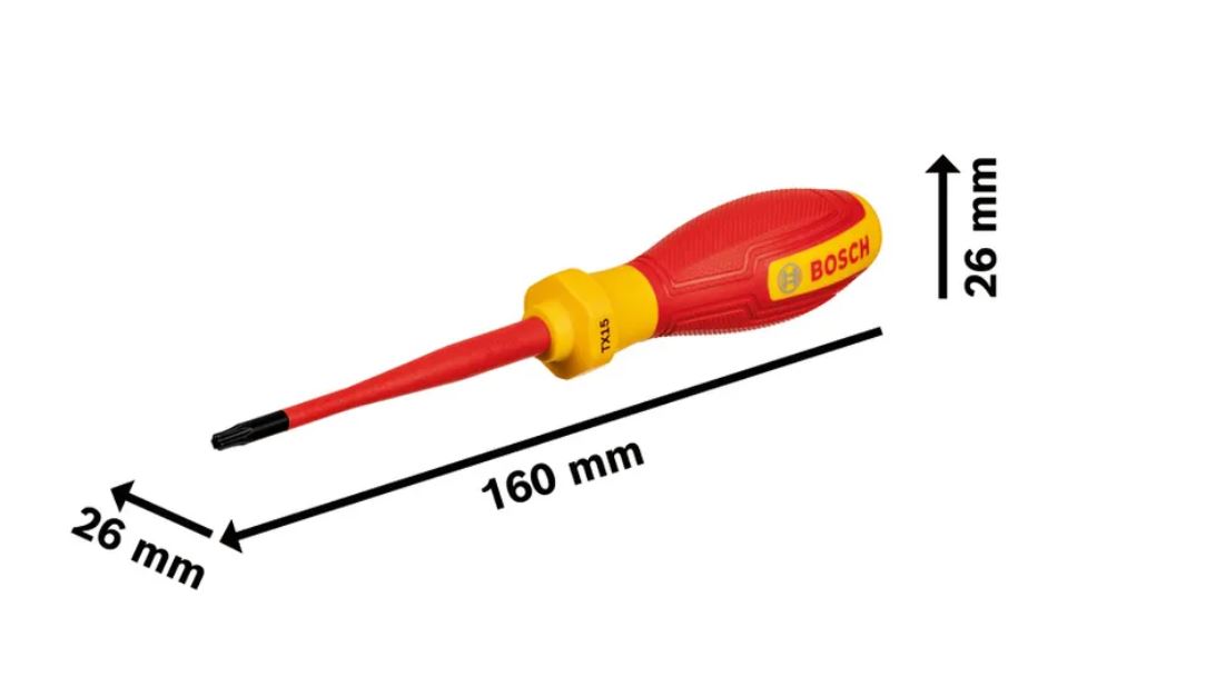 | Osnovni podaci | Profil TX Promjer ručke 26 mm Duljina osovine 75 mm Promjer lista 4 mm Izvedba materijala S2 VDE Ergonomska ručka Pronalazač alata Ručka s mekanim rukohvatom Dizajn sa zaštitom od prevrtanja Tanka izolacija noža Maksimalni napon 1.000 V Težina 0,034 kg |