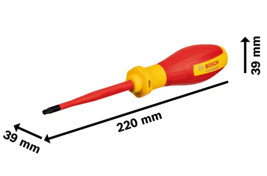 | Osnovni podaci | Profil TX Promjer ručke 38 mm Duljina osovine 100 mm Promjer lista 5,5 mm Izvedba materijala S2 VDE Ergonomska ručka Pronalazač alata Ručka s mekanim rukohvatom Dizajn sa zaštitom od prevrtanja Tanka izolacija noža Maksimalni napon 1.000 V Težina 0,096 kg |