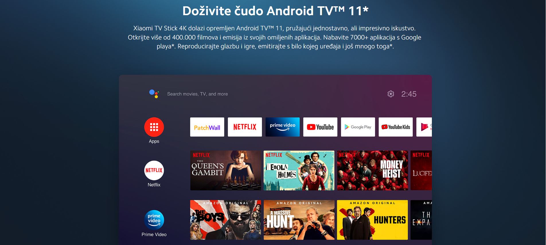 Sadržaj | Netflix, Amazon Prime Video i Youtube unaprijed instalirani | |