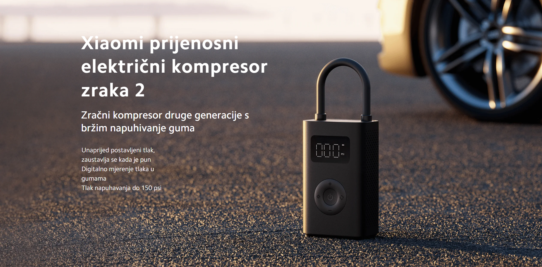 Zahvaljujući magnetskom motoru velike snage, kompresor može napuniti praznu gumu za samo 8 minuta uz snažne performanse napuhavanja. Uz nadograđeni hardver nudi i poboljšanu energetsku učinkovitost. Kada je potpuno napunjen može neprekidno napumpati čak 10 guma ili dvije prazne automobilske gume 205/55 R16. Uz 19 mm visokoprecizni lijevani cilindar od legure, postignite tlak napuhavanja do 150 psi. Za punjenje visokotlačne gume bicikla potrebno je samo 86 sekundi. Prebacite šest načina rada jednom tipkom i postavite zadani raspon tlaka zraka gdje se pumpa automatski gasi kada postigne zadani tlak i tako se izbjegava prekomjerno napuhavanje. Kompresor ima način rada za bicikli, motocikli, automobil, romobil, loptu i ručni način rada. Ručni način rada može zapamtiti vrijednosti tlaka, postavite ga jednom i recite zbogom nezgrapnim postavkama. Xiaomi Portable Electric Air Compressor 2 ima brzu instalaciju bez potrebe prljanja ruku. Novi adapter za brzo spajanje zračnog ventila omogućuje vam jednostavnu i brzu instalaciju zračnog ventila, a uređaj dolazi uz mnoštvo dodataka za slučajeve šire upotrebe. Ugrađena litij-ionska baterija od 2000 mAh pruža nenadmašnu snagu. Nema potrebe za vanjskim izvorom napajanja, budite potpuno bežični. Teži približno samo 490 g, jednostavnog je dizajna i praktičan za putovanje i nošenje. Ima ugrađeno svjetlo koje pomaže u vidljivosti u toku noći. Stavite ga u ruksak, u automobil ili ga pohranite kod kuće - kompaktan je, elegantan i ne zauzima prostor.