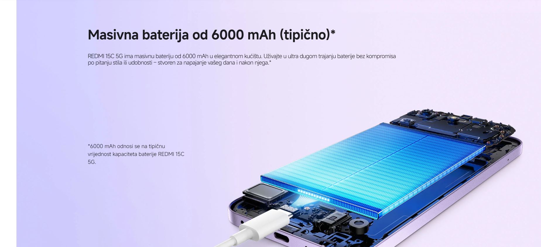 | Baterija | 6000 mAh (tipično) Podržava brzo punjenje od 33 W |